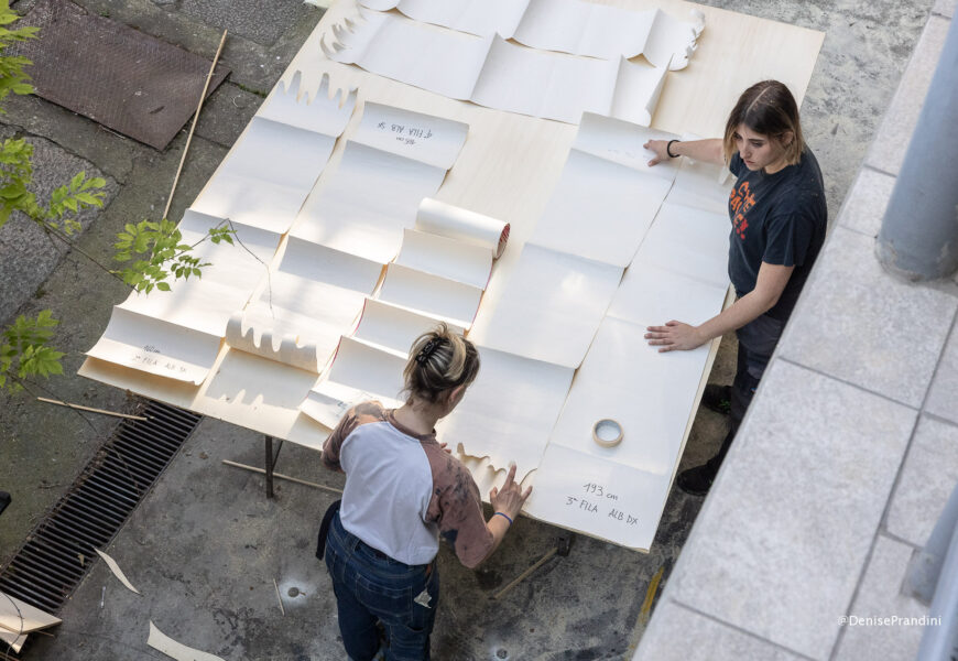 Ore di laboratorio dedicate allo studio dei materiali utilizzati per la decorazione degli elementi scenici.